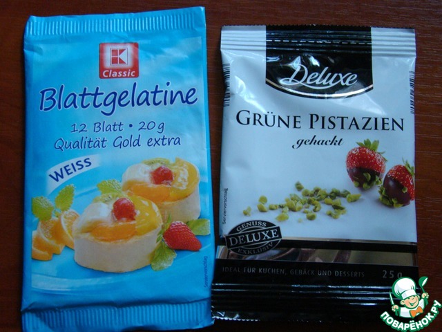 Листовой желатин и не менее драгоценная фисташковая крошка для десертов.