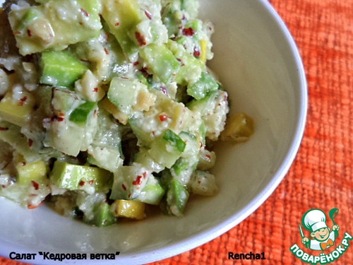 Салат "Кедровая ветка" от Женечки JeSeKi https://www.povarenok.ru/recipes/show/75014/. Первый раз пробовала авокадо))) Салат очень сочный, яркий, вкус великолепный! Вместо кедровых пришлось использовать фундук, думаю, с кедровыми ещё вкуснее будет, обязательно сделаю! Делала на 8 марта для мамы и сестры, всем очень понравился салатик!