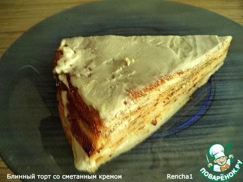 Блинный торт со сметанным кремом от Ирочки Ирушенька https://www.povarenok.ru/recipes/show/72754/ . Простите за фото, но поверьте, на вкус это никак не повлияло! Нежнейший тортик, очень сочный и вкусный! Минимум хлопот - и такое чудо!