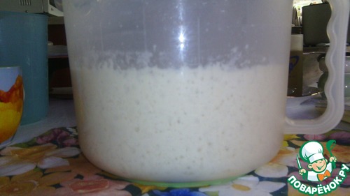 Моей закваске уже месяцев 7. Обычная: мука+вода. Начинала с 50г, добавляла 4 дня еще по 50г. Сейчас только подкармливаю.