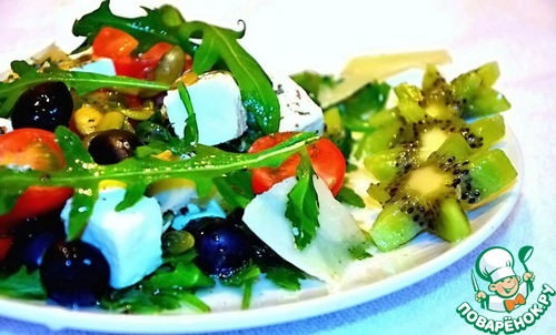 2. Слишком много цветов на снимке, также вижу, что снято при искусственном освещении, фото слегка голубит, сыр голубого оттенка, а так салатик очень аппетитный