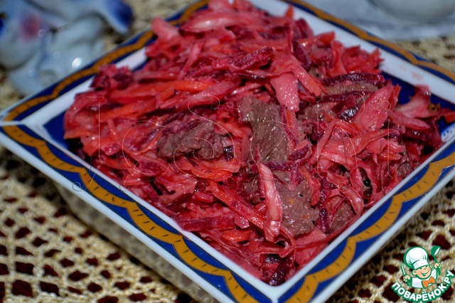 "Салат из белокочанной капусты и мяса "Не верю" - https://www.povarenok.ru/recipes/show/70242/ Очень вкусный, особенно понравился после проведения пары часов в холодильнике. Он мне заменил полноценный обед.