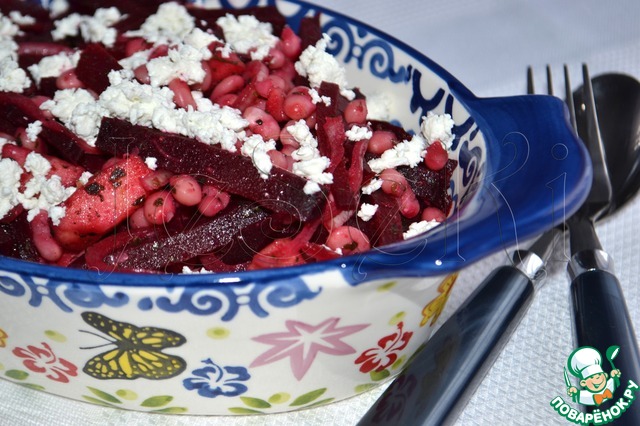 "Салат из печеной свеклы, фасоли, яблока и творога" - https://www.povarenok.ru/recipes/show/82316/ Очень свежий, не избитый салатик. Яблоко и творог очень сочетаются в нем и прекрасно дополняют вкус.