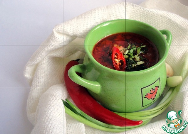 Многие мне делали замечание, что слева много пустого места. Ну тут, наверно, воистину "горе от ума". Фотку обрезала помня урок про "правила третей". Вот сетка. Я обрезала фото так, чтобы сам борщ оказался четко на пересечении линий.