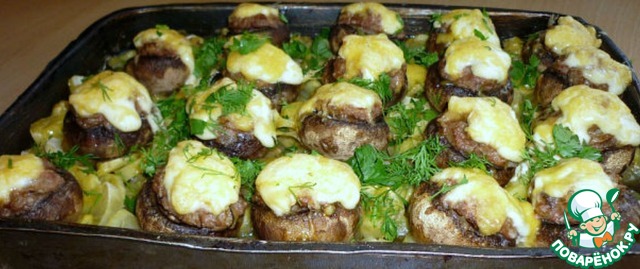 Фаршированные грибы. https://www.povarenok.ru/recipes/show/75676/ получились очень сочными и вкусными!