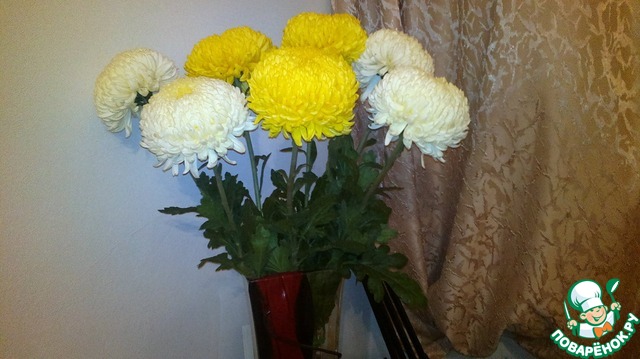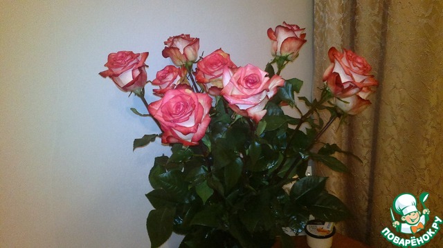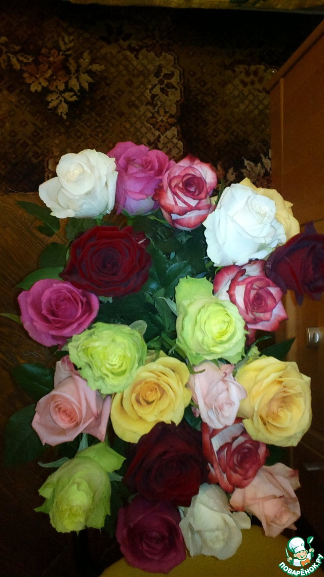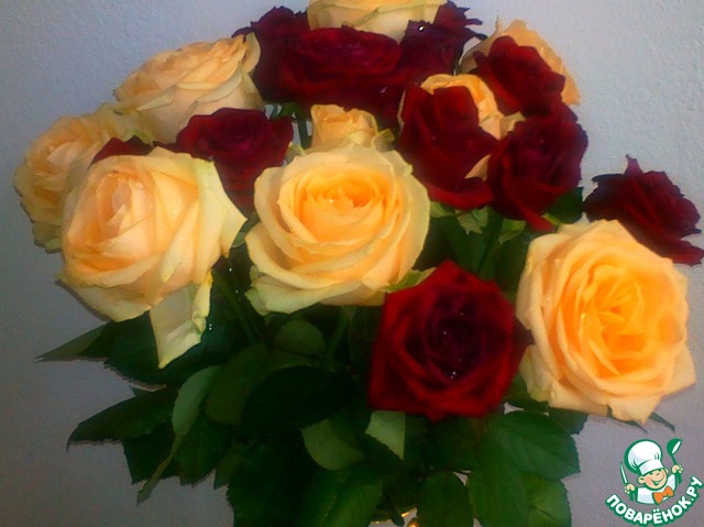 Пожалуй самый тяжелый букет, я бы сказала даже букетище, подаренное мне в честь моего возвращения из отпуска (в который я ездила сама): [cut]