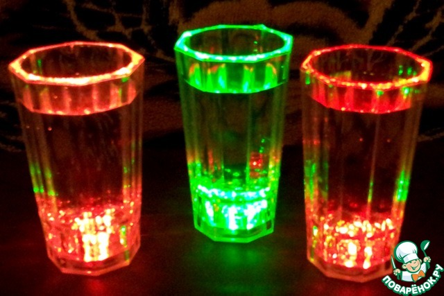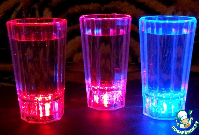 .Когда в стаканчик нальёшь воду, он мигает разными цветами.