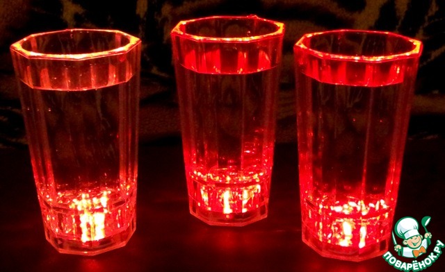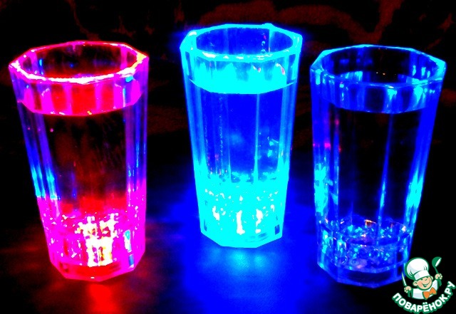 .Когда в стаканчик нальёшь воду, он мигает разными цветами.
