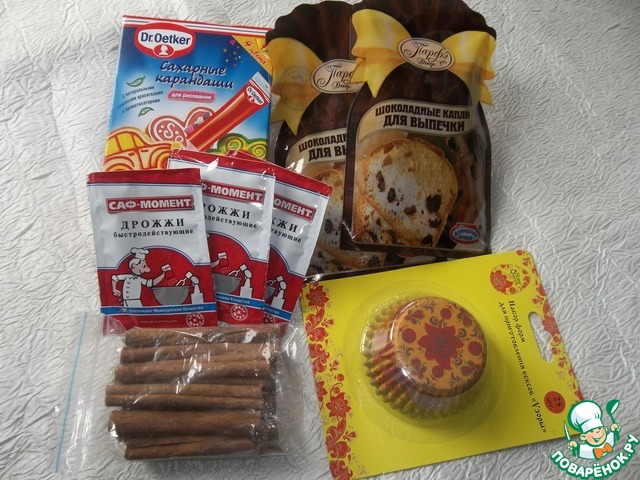 Сахарные карандаши,для сладкого творчества,шоколадные капли(у нас я таких не видела),всегда очень нужные дрожжи,набор красивых формочек для кексов и палочки корицы!!!!!