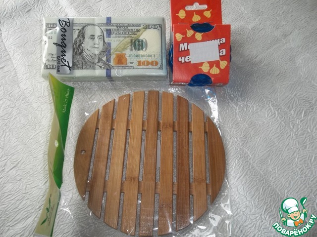 А это интересные салфеточки,мельничка для чеснока и бамбуковая подставочка под горячее!
