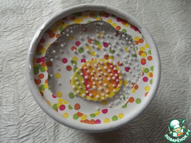 Крем на основе бальзамического уксуса(эх,держитесь салатики!) и шоколадка с разноцветным драже!!!!