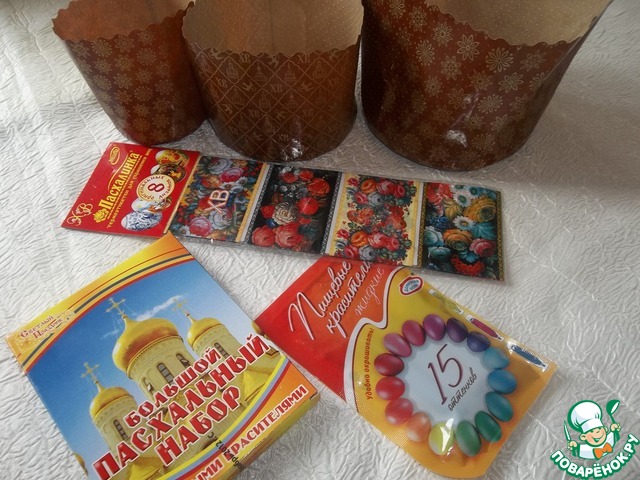 Теперь все по порядку.Это формочки для выпечки куличей,термоэтикетки для украшения яиц,пасхальный набор и пищевые красители!!!!