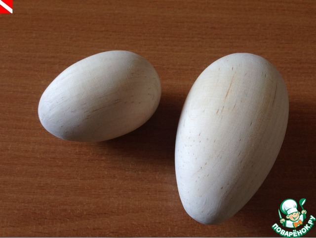Решила так: заказала я у дядечки на рынке, что всякой деревяной утварью торгует деревяное яичко. Он тоже удивился зачем мне. Сказал, что никогда не делал, но попробует. В следующую субботу принес аж целых 5! Три я отправила друзьям, а вот эти 2 оставила своим деткам раскрасить.