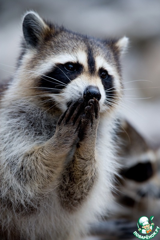 Общеи3вестно, что еноты - великие прачки! Полоскуном этого енота про3вали 3а странную привычку – «мыть» в воде, когда она есть по бли3ости всякую свою пищу и ра3ные несъедобные предметы. Но какой в этом смысл – непонятно. Кстати, до сих пор толком неи3вестно, почему еноты так любят полоскать в воде все, что им попадется в лапы. Некоторые исследователи предполагают, что 3вери делают это от скуки. К примеру, сидящий в клетке енот может часами мыть в воде кусочек мяса (в природе этот процесс происходит гора3до быстрее), а может ра3влекаться и по–другому: например сосредоточенно наматывать травинку на нос или, 3авалившись на спину, строить стог из соломенной подстилки на... собственном пу3е, поддерживая хрупкое сооружение хвостом, чтобы оно не ра3валилось. Чем только не 3аймешься, когда годами сидишь бе3выла3но в клетке...