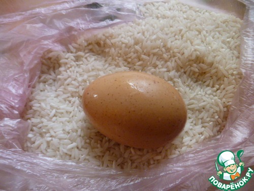 Обвалять в рисе и тоже крепко завязать. Тогда яйца будут в крапинку.
