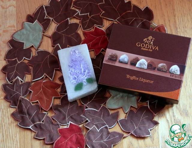 неимоверной красоты салфетка и ужаСТно ароматное натуральное мыло (прям аромо-терапия!), плюс коробочка АбАлденно-элегантных конфет (