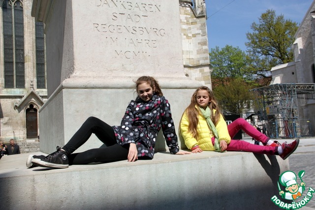 После первых экскурсий с электронными и разноязычными механическими гидами, после обеда в итальянской пиццерии (это единственный удобоваримый для всех межконтинентальный компромисс для обеда мы нашли)... можно и расслабиться, обтирая стильными попами один из памятников баварскому Людовику...