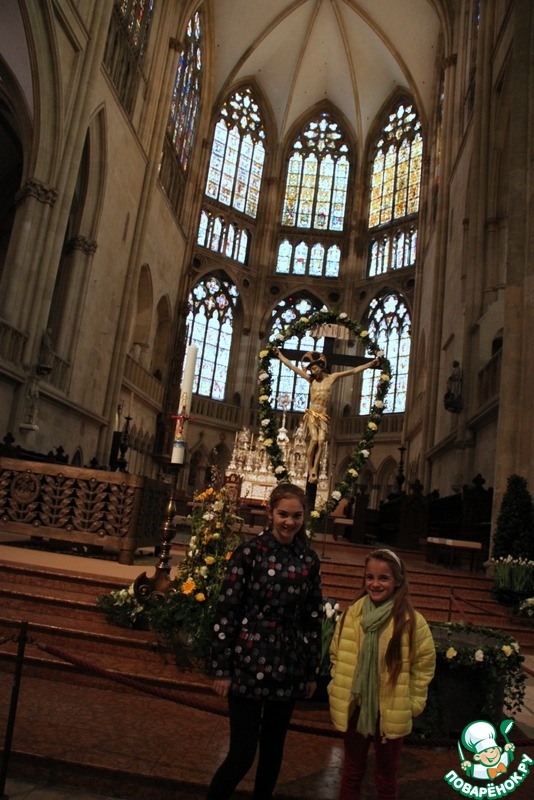 Девчонки с радостью поглощают историю и снаружи и внутри: накануне Пасхи главный собор цветёт и оживает не только благодаря тысячелетней мозаике, но и живым цветам, которыми украшен алтарь