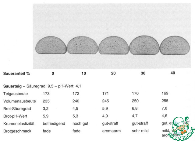 Закваска с кислотностью 10.5 град, кислая - рН4.1 (это как кислый йогурт кислая на вкус). У хлеба из идеальной черной ржаной муки по рецепту пшеничного, без закваски, - такая же кислость и кислотность как у ситного: рН 6.0, 3.0 град кислотностии.