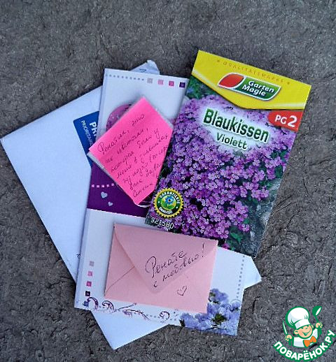 А на открытке приклеен конвертик, а в нём... семена цветиков, которые я у Наташи в дневничке видела и заинтересовалась! Вы представляете, девочки?!