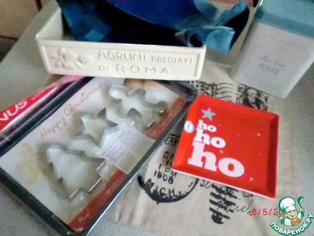 И после Рождества осталась тарелочка. Все еще надеюсь как-нибудь поучаствовать в конкурсах на любимом Поваренке. Решила, что для новогодних конкурсов мне пригодится. Или просто для сервировки стола. Еще был подносик и формочки для выпечки, их давали в качестве бонуса тем, кто покупал старые глянцевые журналы. Меня пожалели, и дали эти сокровища без глянцевого журнала.