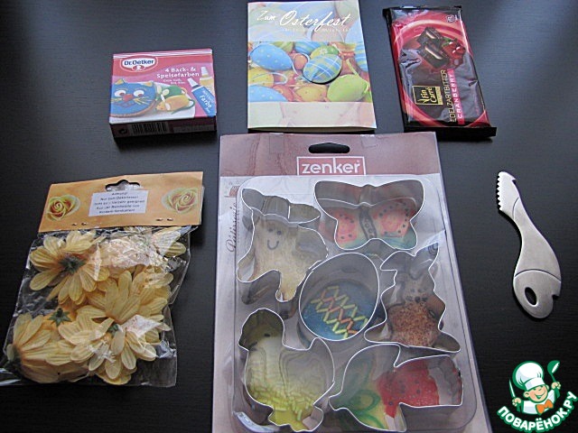 Хочу похвастаться полученным мною подарком в дни празднования Пасхи от Ларисы Kleine Hase. Подарок совершенно неожиданный и безумно приятный! К теплому пасхальному поздравлению прилагались приятные подарочки: невероятно вкусный шоколад с сушеной клюквой, милые формочки для печенья и краски для их раскрашивания. Мы с внуком скоро их опробуем. Невиданный ранее гаджет - нож для чистки цитрусовых занял свое место в вазе с фруктами. И еще цветы для декора. Я им очень обрадовалась, нужны мне в одной задумке. Ларисочка, золотой человек, спасибо тебе огромное за доставленную радость!