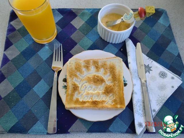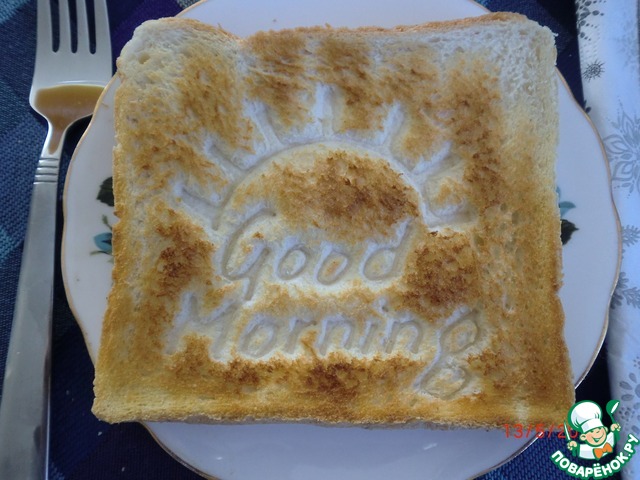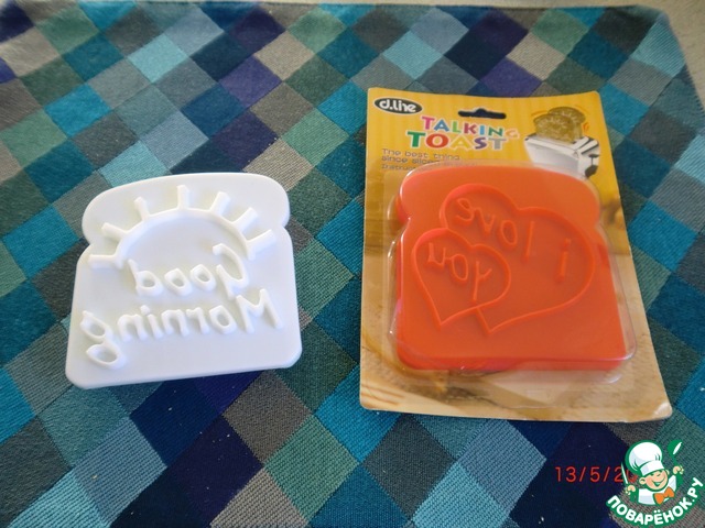 На этот раз мне попались на глаза печати для тостов, купила на пробу с надписями "доброе утро" и сердечками