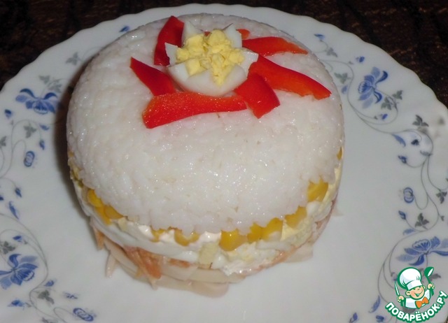 Не знала добавлять салат или нет,так как фотографировала давно и "для себя" (простите за фото,стыдливо отворачиваюсь...) Но он вкусный и очень красиво смотрелся на столе - поэтому все же решилась... Спасибо xsenia https://www.povarenok.ru/recipes/show/19544/ В оформлении с автором совестливо конкурировать,но как есть... Единственное,что соус я добавила между слоев,дабы получить дополнительную сочность....