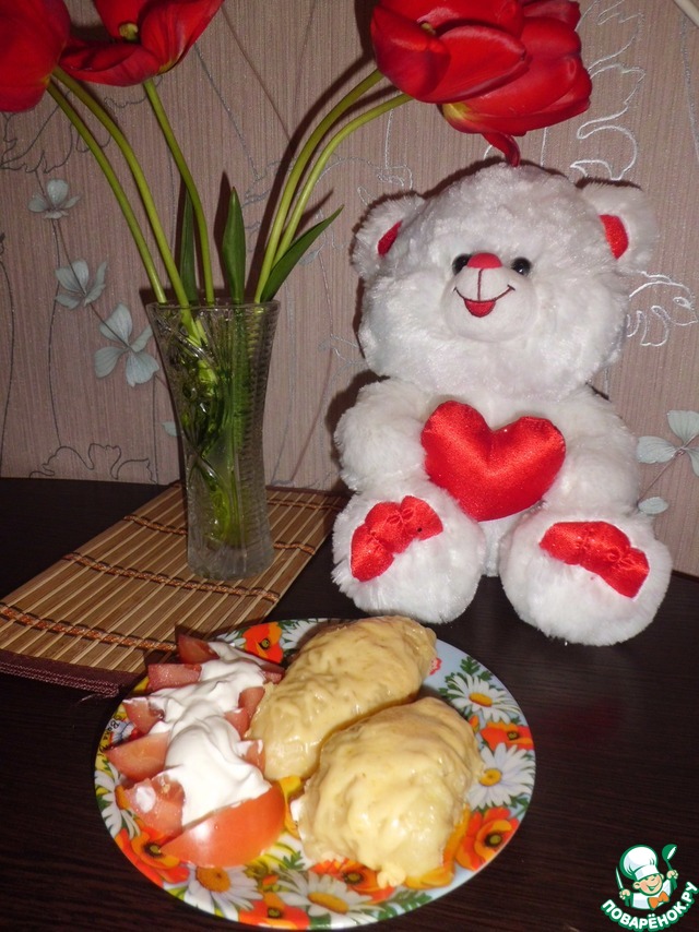 Здесь хочу выразить благодарность nikulj https://www.povarenok.ru/recipes/show/15239/ Я готовила их на пару,поэтому получились больше похожи на пирожки,но вкус от этого не пострадал...