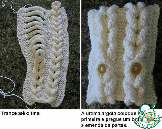 Связав нужную длину плетем косичку (одну петельку в другую всовывала). Если на шарфе то с одной стороны, если для шапки с двух сторон плетем и на конце последнюю петельку закрепила пуговкой, а на шарфе я крепила бахромой.