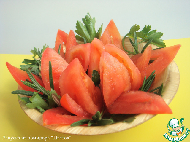 Закуски из помидора" Цветок",сразу сделала его.Это так интересно и прекрасное украшение стола!