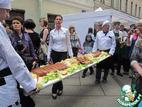 Участники парада не остались голодными. Был изготовлен 21-метровый хот-дог, занесенный в книгу рекордов Петербурга.