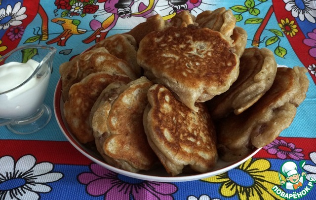 А это мой очередной эксперимент, оладьи замешивала вот по этому рецепту https://www.povarenok.ru/recipes/show/78311/