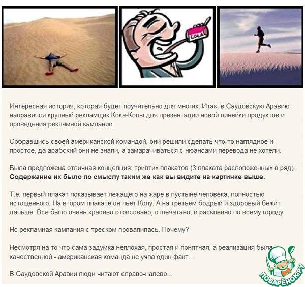 правильная реклама . особенно, с учетом добавки в колу ортофосфорной кислоты, которая выводит жидкость из организма и вызывает жажду. в пустыне от колы загнешься еще быстрее, чем без нее.