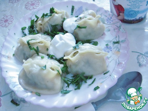 А поедается это так - сначала надкусываем тесто и выпиваем бульон, затем окунаем наш мант в сметанку и лопаем!