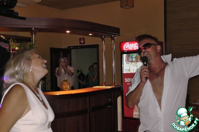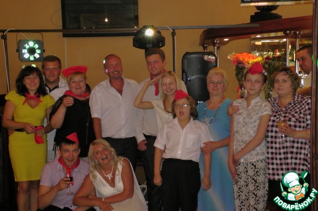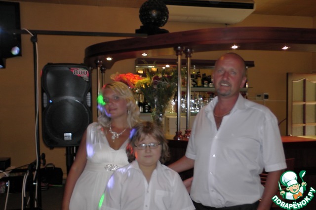 Было очень много разных конкурсов. Это фото после одного из них. Рядом с мужем наш старший сын. Голова торчит.