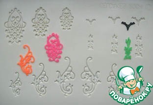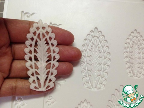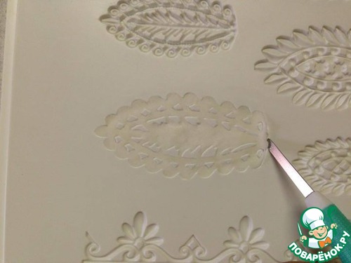 Мастику шпателем наносим на узор, а потом, приподымая иглой с разных сторон, аккуратно достаем