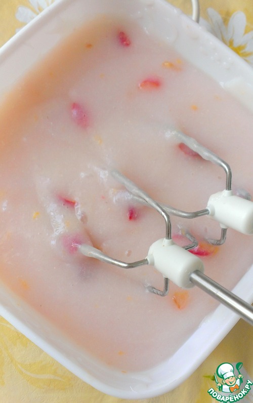 Убираем в морозильную камеру на час,через час взбиваем.Повторяем эту процедуру еще три раз через каждые полчаса (самое сложное по-моему))