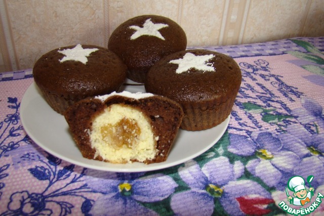 Действительно если заполнять формочки на 2/3 кексы получаются выше и «вмятинки» от начинки нет.