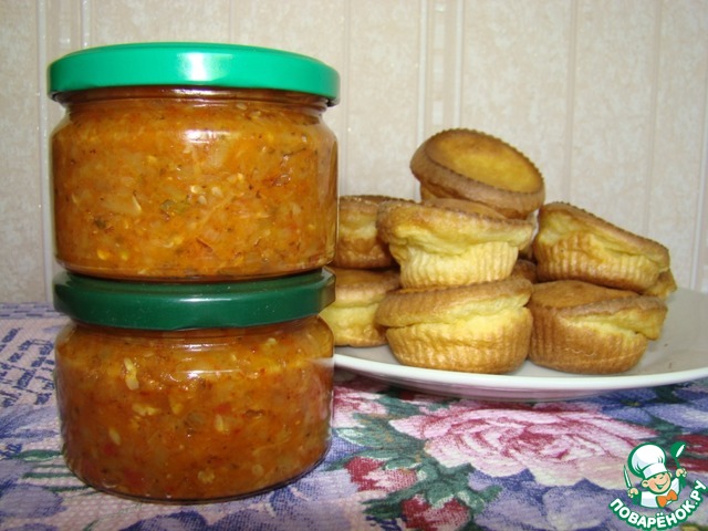 Закрывала специально в маленьких баночках, что бы только на раз поесть, так как у нас уже очень жарко и продукты на природе быстро портятся, к концу вторых суток друг уже открывает покупную тушенку, а у меня только свежие овощи))) Вот и решила заняться консервацией))) Это первый самостоятельный опыт))) Другу получилась начинка для булочек, а для меня просто самостоятельное блюдо. Очень вкусная икорка получилась.