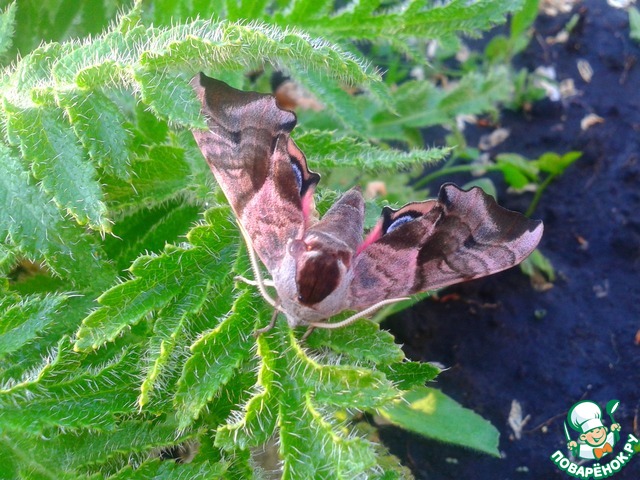 Эту бабочку я обнаружила, поливая утром цветы. [cut] Может и прошла бы мимо, не обратив на неё внимания, если бы не обдала её водой!!! И .... она, как по волшебству из серой, невзрачной "моли" превратилась в хищную красавицу! Посмотрите - это морда волка или собаки?!!! Глаза, нос, уши! А цвет! Вот, что делает природа, чтобы отпугнуть врага!