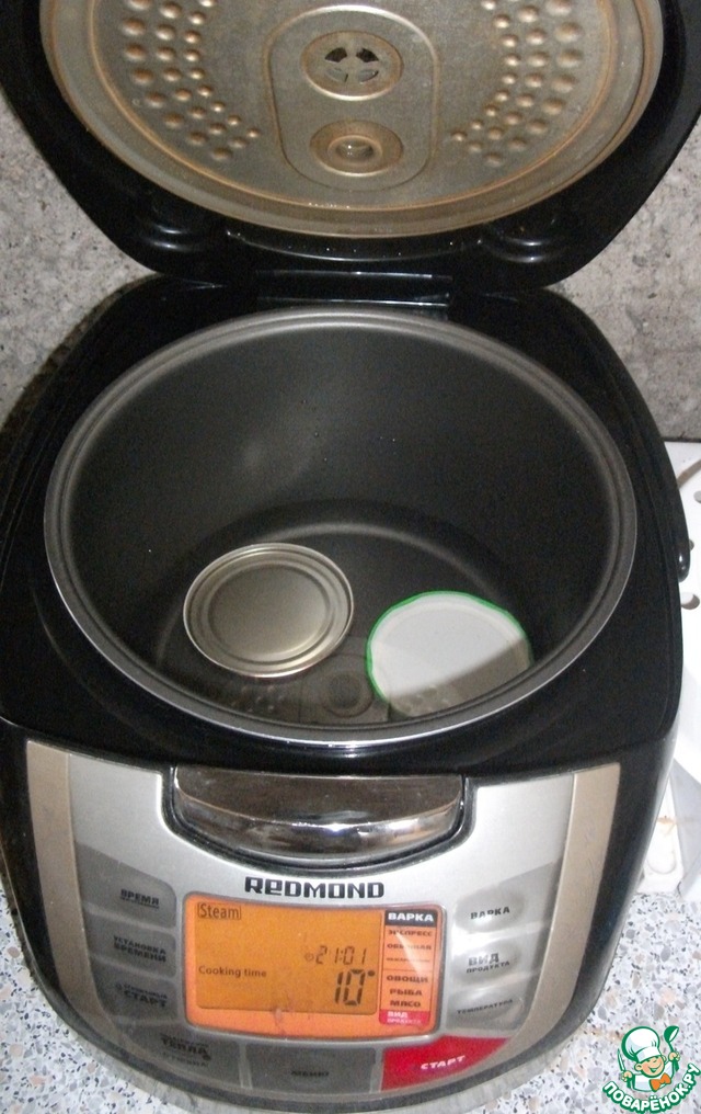 В ёмкость мультиварки наливаем воды и кладём в неё крышки.