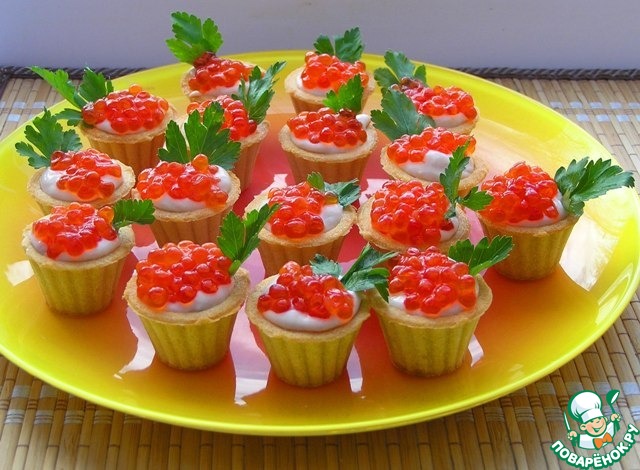 Очень вкусный мусс, закуска исчезает мгновенно. Тарталетки я покупала готовые.
