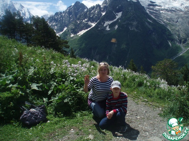 Взяв за шиворот упирающегося сына и счастливую маму, добралась до знаменитой визитки Домбая...(ха!Кто был в Домбае? у кого нет такого фото? Кстати, это подарок Финляндии)