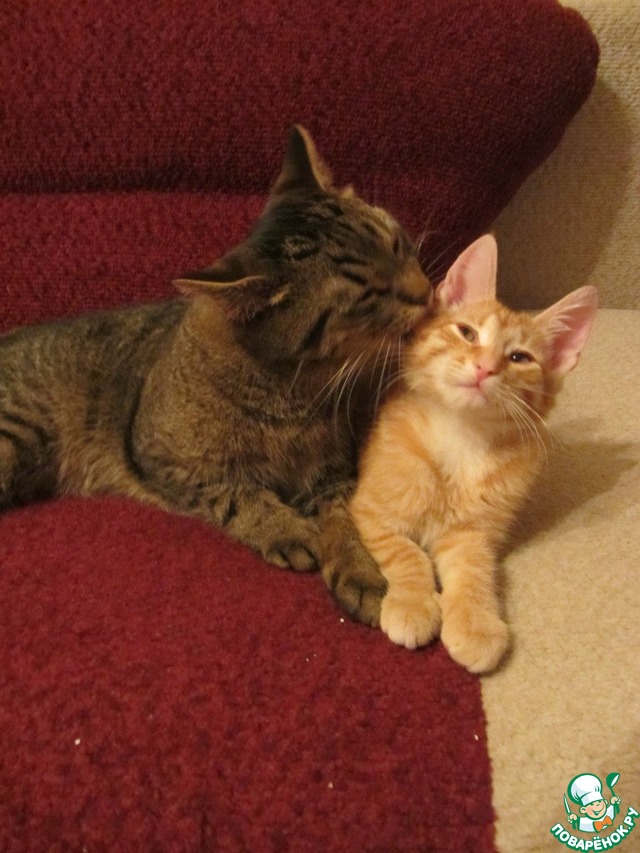 Самый главный нянь - это Нельсон! Вот как трогательно он вылизывает Фоксика! Фоксик у нас прожил 2 месяца, это бывшеподвальный котенок, подлечили его и он уже давно живет в новом доме!