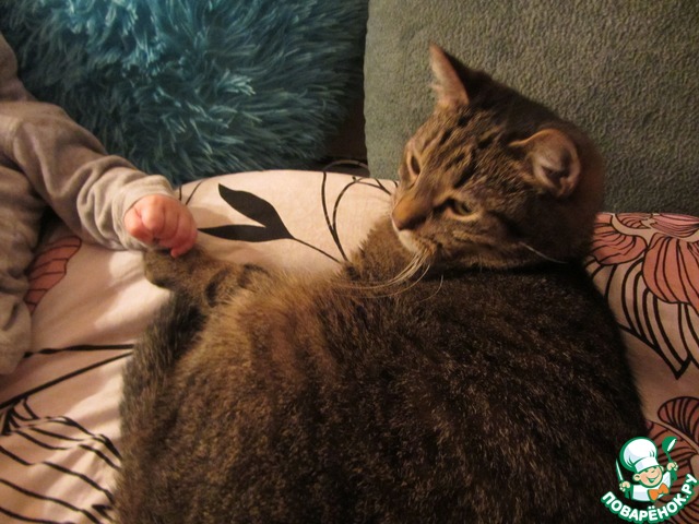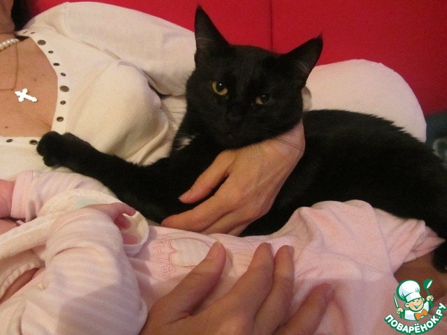Это Черныша на руках у бабушки помогает убаюкивать мурчанием Карину) Карине месяца 2 было на этом фото.