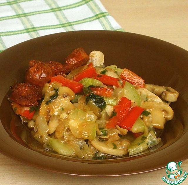 Кабачки с грибами и перцем по рецепту inna_2107 https://www.povarenok.ru/recipes/show/50626/