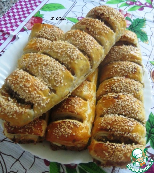 "Ореховый штрудель с мучной крошкой" от поваренка АлексЮстас https://www.povarenok.ru/recipes/show/91374/ Очень вкусная получается начинка, делала такую первый раз! На фото - только половина рулетиков, из указанного количества ингредиентов у меня вышло 8 красавцев