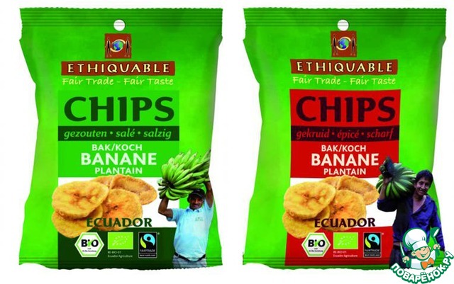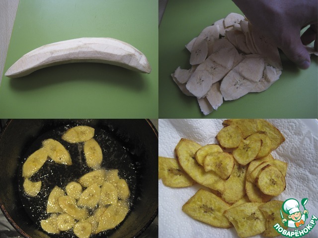 [cut] Для чипсов нужно брать именно зелёный плантан, тогда они будут хрустящими и не обгорят в раскалённом масле. Спелые бананы тоже можно обжарить, или запечь, они прекрасно подойдут в качестве гарнира к рыбе например. Хорошо сочетаются с чёрным перцем и солью.