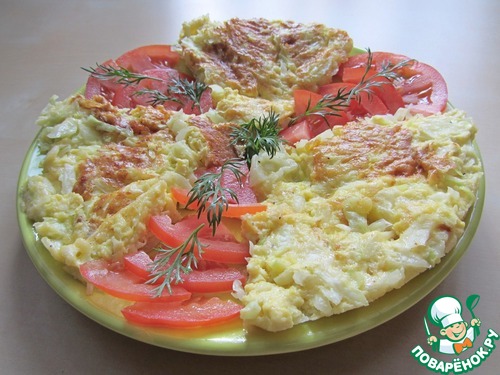 Омлет с капустой https://www.povarenok.ru/recipes/show/65139 от Людмилы Новоселовой.